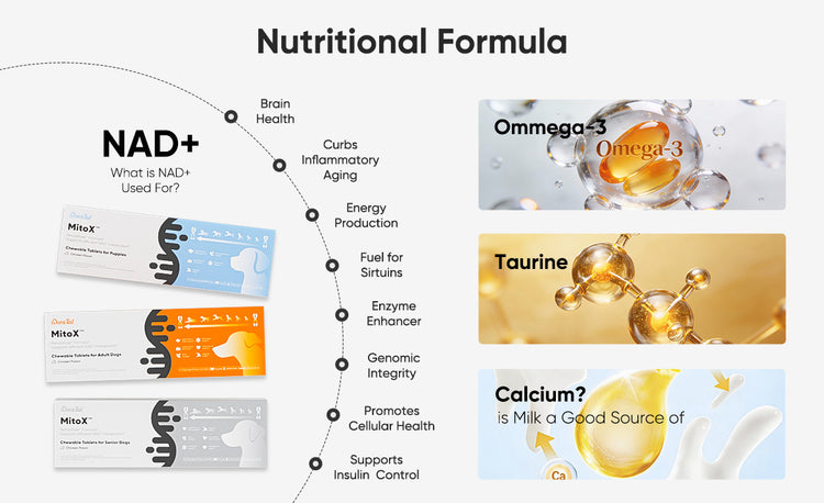 Support for Adult Dogs’ Energy, Mobility & a Healthy Life Powered by our exclusive Penaditide™ technology, this advanced formula for adult dogs helps optimize NAD+ utilization and supports cellular energy production — promoting healthy metabolism, lasting vitality, and complete wellness through every stage of adulthood.* From joint support to cellular energy, antioxidant defense to skin and coat health — this balanced formula helps adult dogs stay strong, agile, and full of vitality through every stage of life.